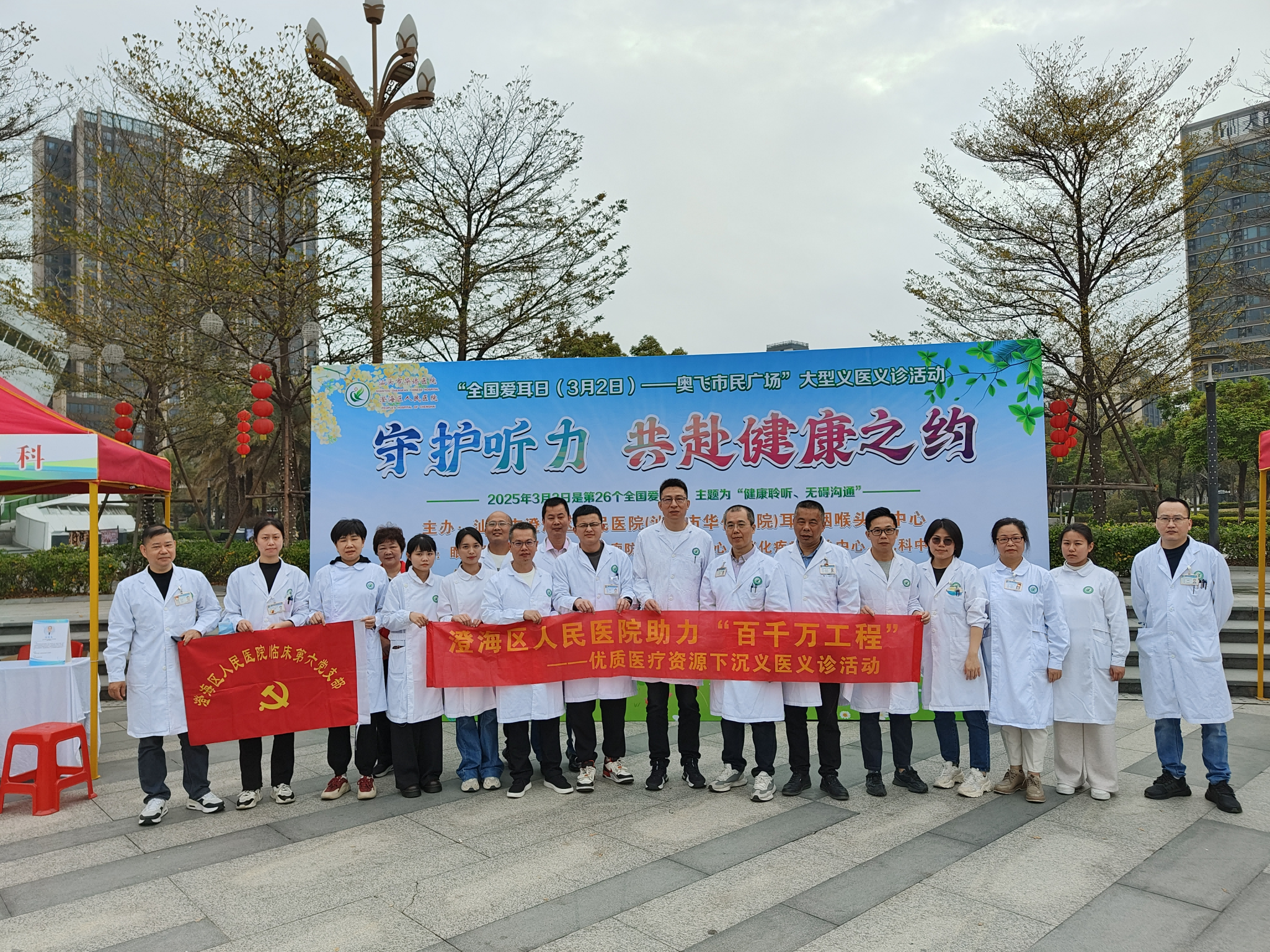 2025年3月3日是第26个全国爱耳日,3月5日是第62个学雷锋纪念日。为提升大众听力健康意识股市配资杠杆,把健康送到群众家门口,进一步弘扬“奉献、友爱、互助、进步”的志愿精神,3月2日上午,我院耳鼻咽喉头颈中心携手眼科中心、脑科中心、肿瘤防治·介入中心、消化疾病防治中心、呼吸疾病防治中心、泌尿肾病防治中心、代谢免疫疾病防治中心、儿科中心组成专家团队在澄海奥飞市民广场举行爱耳日大型义诊活动,我院团总支也以“志愿同行,共赴健康之约”的口号,邀请志愿团体共同为守护群众健康助力。